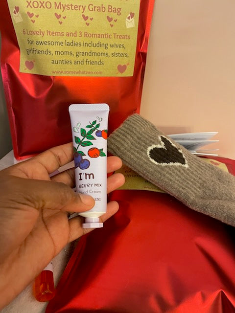 This XOXO grab bag is the perfect gift to give to any special lady in your life. Just right for wife’s, mothers, sisters, aunties, grandmoms and friends. This “I love you” mystery bag contains a 6 unique items both handmade and specially curated to let the woman in your life know how much they are adored by you. In addition, there are three yummy and romantic treats in each surprise bag.